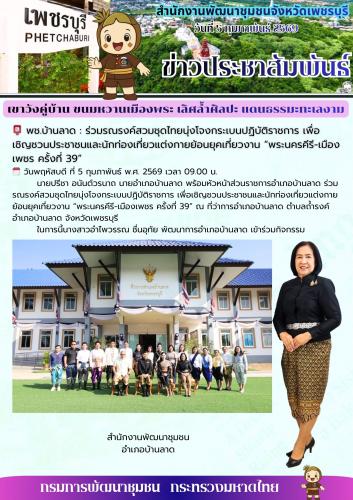 นายปรีชา อนันต์วรนาถ นายอำเภอบ้านลาด พร้อมหัวหน้าส่วนราชการอำเภอบ้านลาด ร่วมรณรงค์สวมชุดไทยนุ่งโจงกระเบนปฏิบัติราชการ เพื่อเชิญชวนประชาชนและนักท่องเที่ยวแต่งกายย้อนยุคเที่ยวงาน “พระนครคีรี-เมืองเพชร ครั้งที่ 39” ณ ที่ว่าการอำเภอบ้านลาด ตำบลถ้ำรงค์ อำเภอบ้านลาด จังหวัดเพชรบุรี