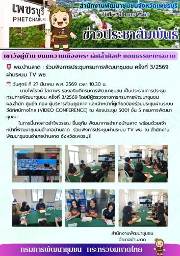 📮 พช.บ้านลาด : ร่วมฟังการประชุมกรมการพัฒนาชุมชน ครั้งที่ 3/2569 ผ่านระบบ TV พช.